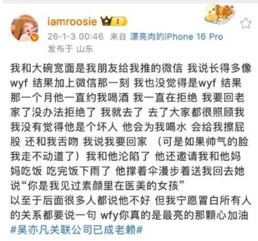 这次爆料最骇人听闻的地方,不在于内容有多露骨,而在于“覆盖面”有多夸张。 从出道十年的初代流量,到正当红的新生代偶像,再到口碑不错的实力派演员,几乎没有一个年龄段“幸免”。 博主在动态里,用近乎流水线的方式丢出一颗又一颗“定时炸弹”: 和谁暧昧、和谁牵手出游、和谁深夜见面、甚至还有“见家长”级别的情节描写。 每一条都像是精心剪辑好的狗血剧本,把一群原本风马牛不相及的男星,生生串成了一张扑朔迷离的情网。 当事人尚未正面回应,围观群众却已经脑补出一整部内娱连环塌房实录。 有人坚信这是实锤现场,有人则怀疑是高配版爽文策划。 在真相水落石出之前,这场连续剧还远远没有到终章。